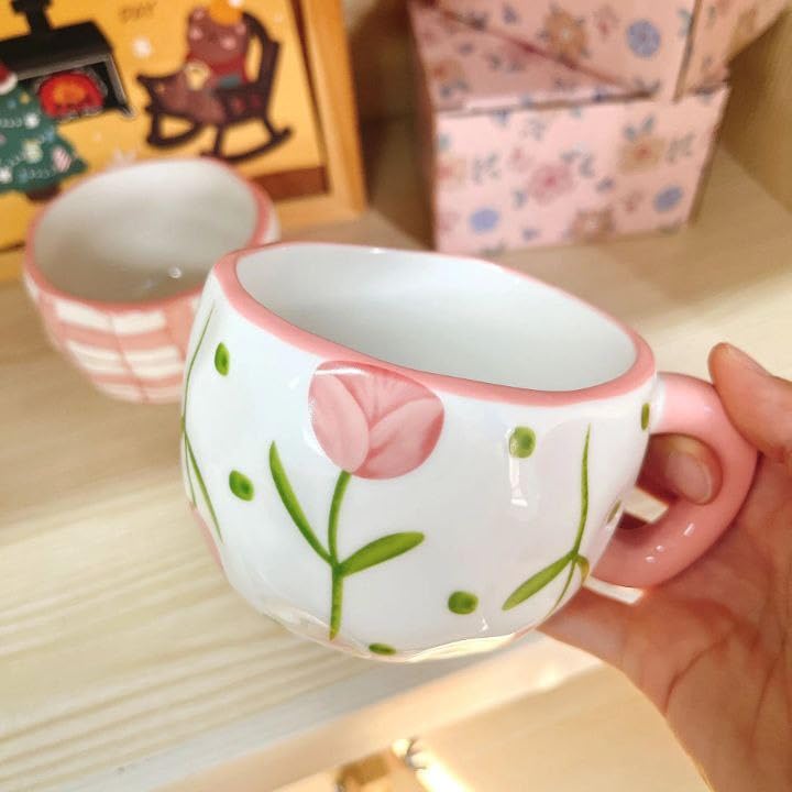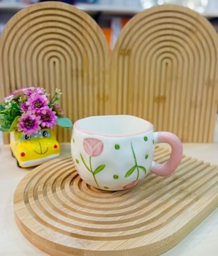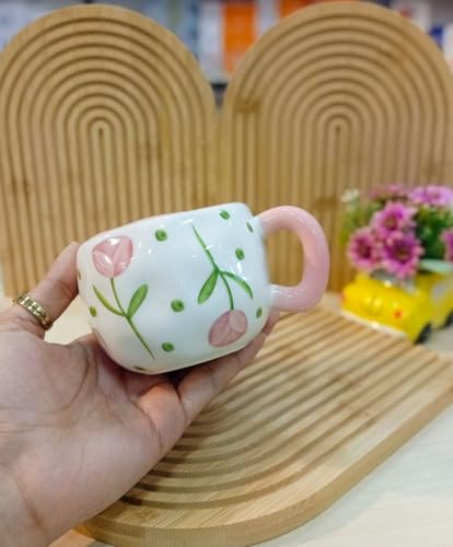 Generic - طقم فناجين شاي من السيراميك بتصميم زهور مع صحون، كوب بتصميم زهرة التيوليب الزهري، 300 مل، ابيض