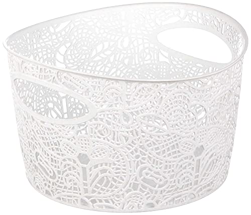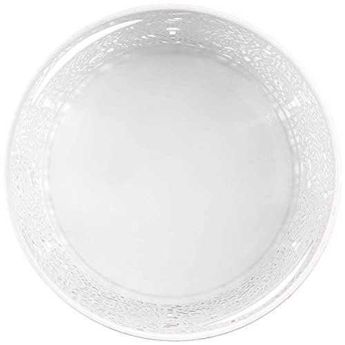 Generic - سلة بلاستيكية دائرية بتصميم على شكل ورد ومقابض للحمل - ابيض