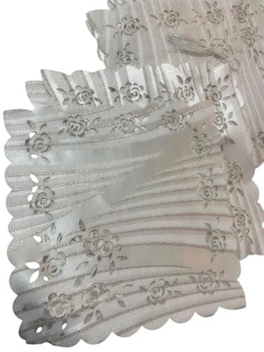 - ٤) لون عصري: لون أبيض نقي مع تطريزات فضية لامعة تضفي لمسة من الرقي والجمال على طاولتك