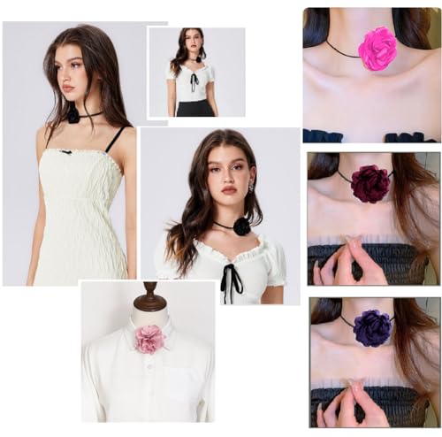 Generic - سلسلة قلادة شوكر على شكل زهرة زهري من الدانتيل مصنوعة الشيفون للنساء وردة كاميليا ديزي عقد ضيق للبنات الربيع والصيف نمط فرنسي