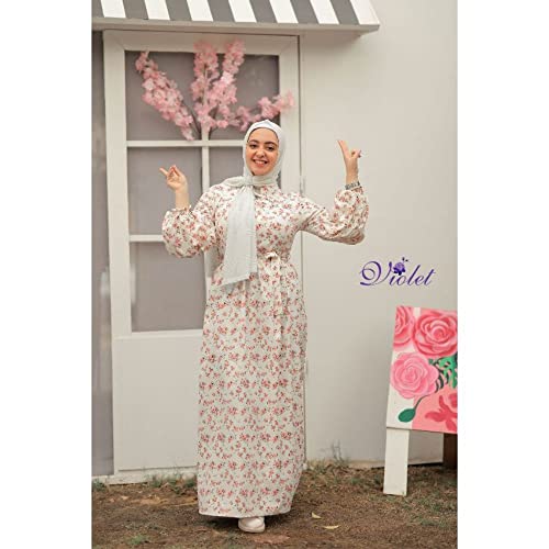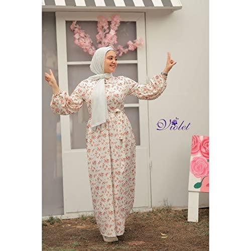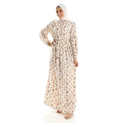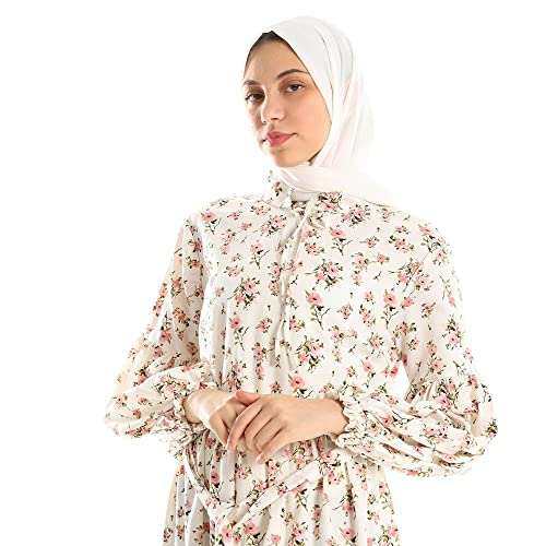 Generic - فستان طويل بنمط مشجر وردي واوف وايت للنساء