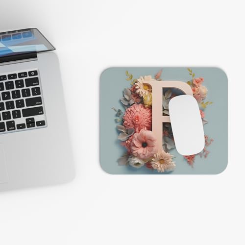 Generic - قاعدة ماوس بتصميم مونوجرام حرف F مزينة بالزهور، اكسسوار مكتب أنيق مخصص، قاعدة ماوس ناعمة وغير قابلة للانزلاق للألعاب والعمل المكتبي، قاعدة ماوس متينة - 306