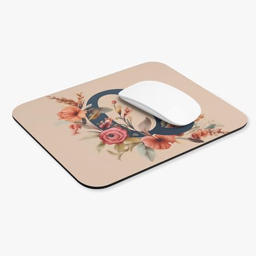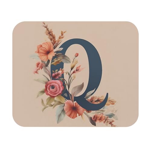 Generic - قاعدة ماوس مونوغرام بتصميم زهور وحرف Q | اكسسوار مكتب شخصي أنيق، قاعدة ماوس مقاومة للانزلاق للألعاب والمكتب، سطح أملس وغير قابل للانزلاق، قاعدة ماوس متينة - موديل 317
