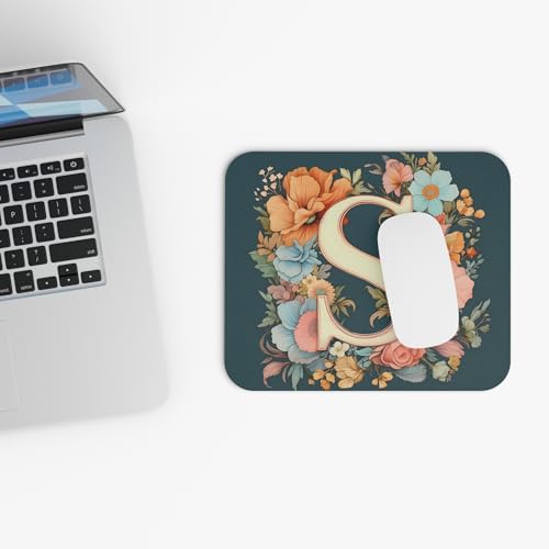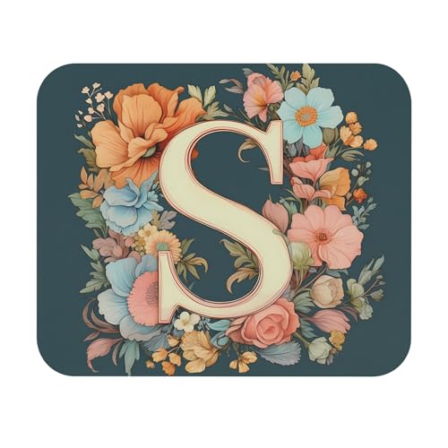 Generic - قاعدة ماوس 319 بنمط زهور وحرف S بملمس ناعم ومتين بتصميم بطابع شخصي أنيق، ملحق للمكتب مضاد للانزلاق لماوس المكتب وألعاب الفيديو