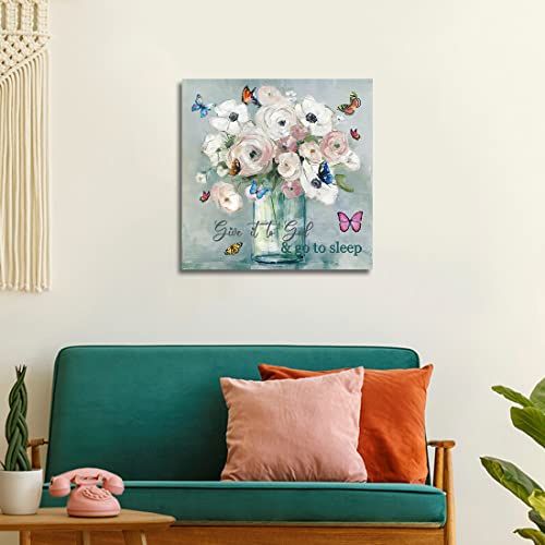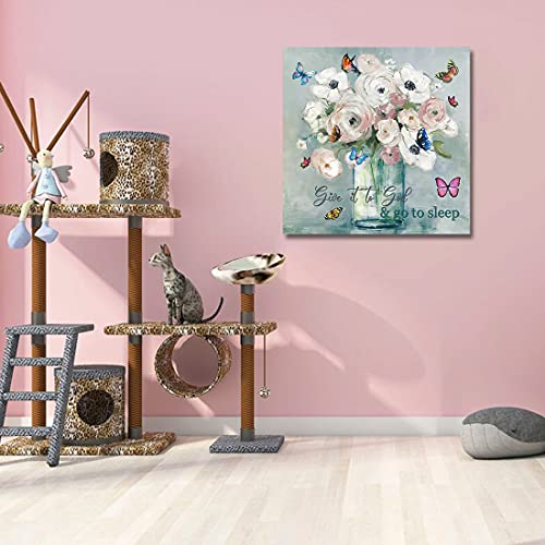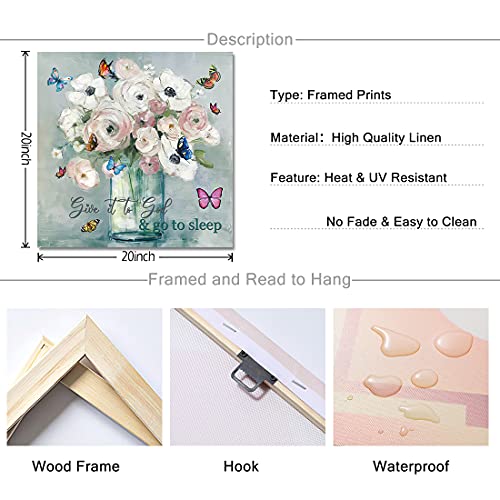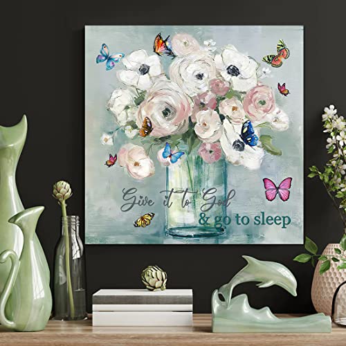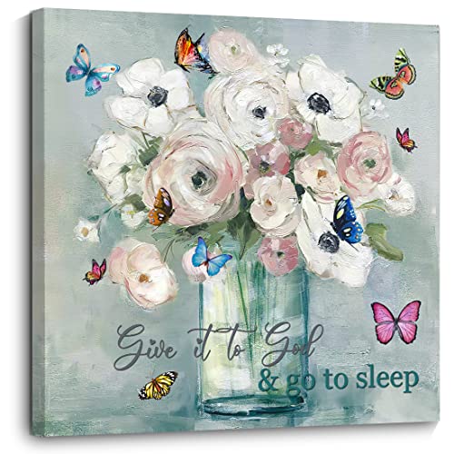 - لوحة على قماش بنمط الأزهار الريفية: مرسومة بشكل جميل على قماش مشدود على إطار خشب، لوحة فنية لفازة، سهلة التعليق بخطاطيف مسبقة التركيب.