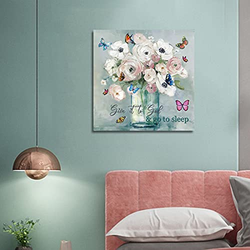 WOWGOOMO - لوح قماش للرسم بالون الزيت برسمة زهور وفراشات عصرية لوحة فنية مؤطرة لغرفة النوم والمعيشة ولتزيين المنزل مقاس 120×20 بوصة للتعليق على الحائط زهري