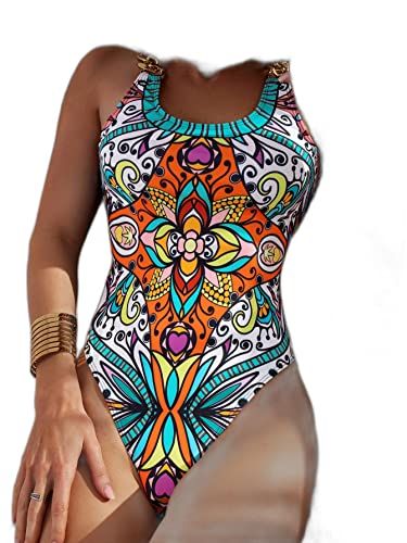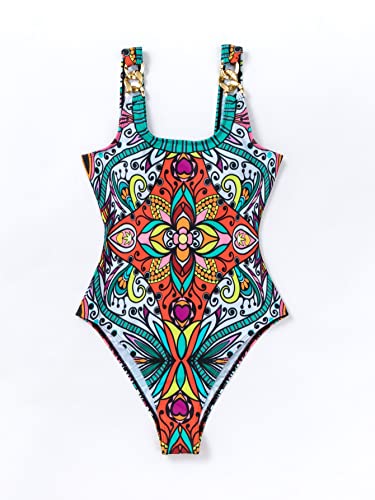 SHEIN - مايوه سباحة قطعة واحدة مزين بطبعة زهور وسلسلة متصلة