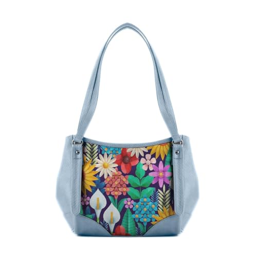 Generic - شنطة يد كبيرة توت من الجلد بطبعة زهور، ازرق مع نمط زهور قائمة متعددة الالوان