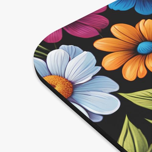 Generic - قاعدة ماوس بتصميم جمجمة زهور للكمبيوتر واللاب توب - زهور ملونة وفن جمجمة زرقاء، قاعدة مكتب بتصميم قوطي جمالي، سطح املس وقاعدة مطاطية غير قابلة للانزلاق