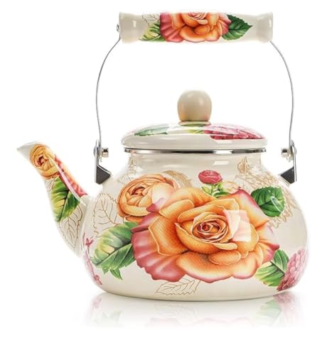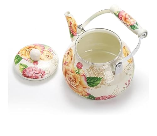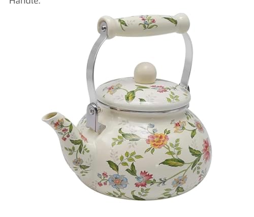 Generic - إبريق شاي من المينا بتصميم زهور مع مقبض معدني، أبيض، 1.5 لتر
