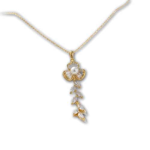 Generic - قلادة على شكل كرمة الزهور - قلادة بلمسة نهائية ذهبية مع تفاصيل لؤلؤ وماس، سلسلة قابلة للتعديل، مضادة للتشويه، مجموعة قلادة رومانسية للنساء والأحباء.