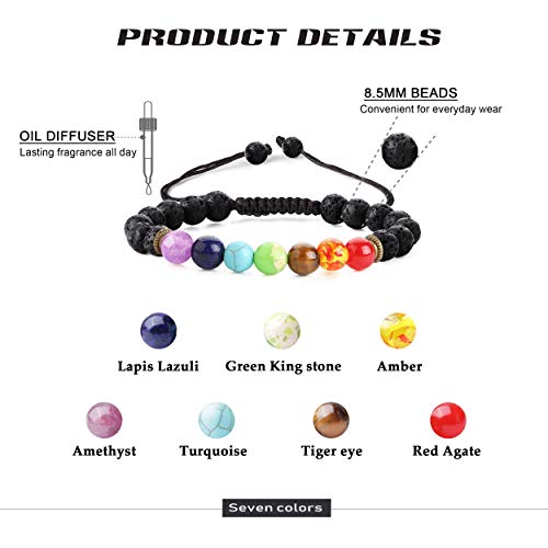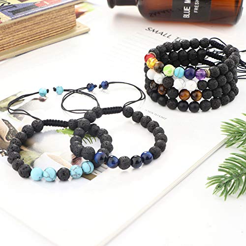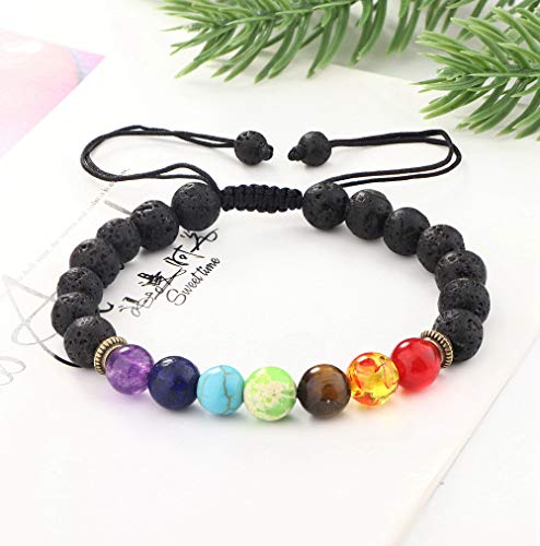 Florideco - اساور حجر اللافا 6 قطع من فلوريديكو 7 شاكرات عين النمر بخرزات لازالة الضغط مع رياضة اليوجا العلاج بالزيوت الاساسية قبل للتعديل للنساء للرجال للبالغين الجنسين