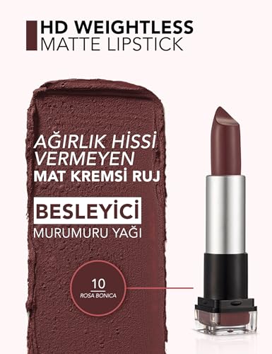 Flormar - أحمر شفاه اتش دي ويتليس مطفي من فلورمار، 010 روزا بونيكا