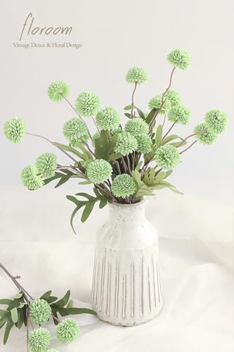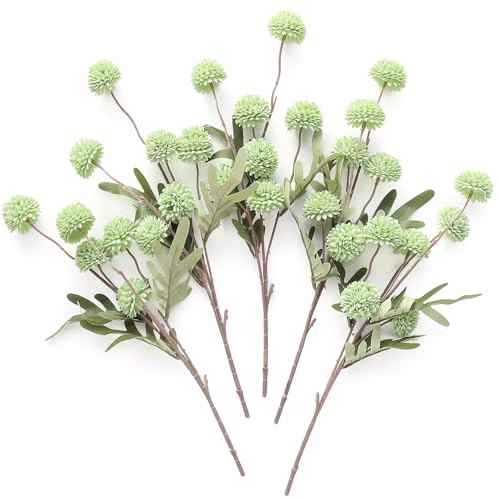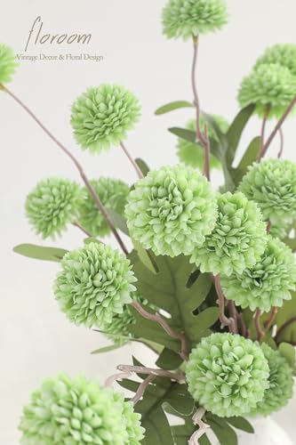 Floroom - زهور أقحوان بومبون اصطناعية صغيرة مع سيقان من حرير صناعي لتنسيق باقات وقطع زينة وسطية لحفلات الزفاف وحشو التنسيقات الزهرية وديكورات حفلات الاستقبال من فلوروم، أخضر مريمية وأخضر (Elf Green)، 5 قطع
