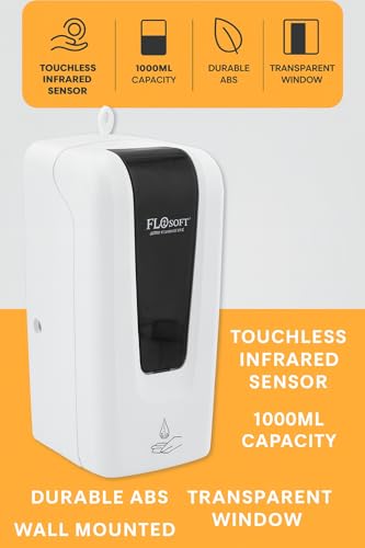 Generic - موزع صابون أوتوماتيكي يثبت على الحائط بدون لمس من فلوسوفت مع مستشعر، موزع معقم اليدين الأوتوماتيكي من البلاستيك سعة 1000 مل. (أبيض)