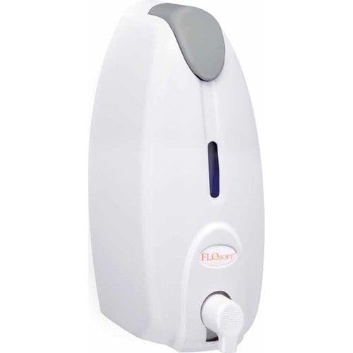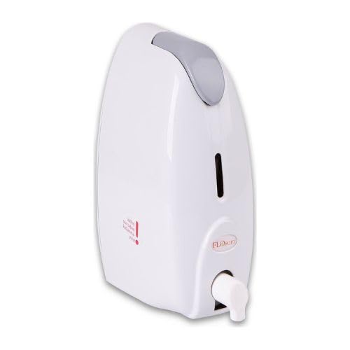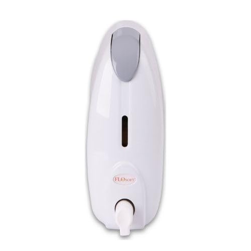 FLOSOFT - موزع صابون رغوي بلاستيك يثبت على الحائط سهل الملء ومناسب لصابون اليدين السائل ومعقم اليدين بلون أبيض مع غطاء بلون رمادي من فلوسوفت 500 مل