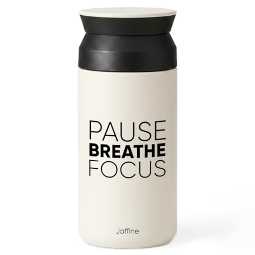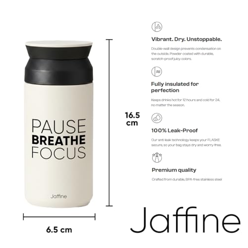 Jaffine - زجاجة حرارية من الستانلس ستيل سعة 350 مل من فلو سيريز - اصدار مايند - زجاجة مياه معزولة مانعة للتسرب للمشروبات الساخنة والباردة (ابيض عاجي)