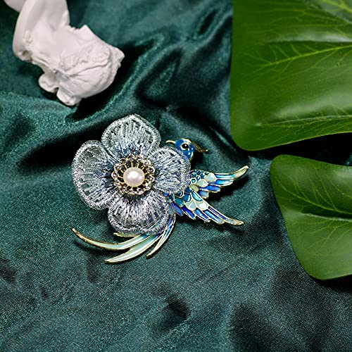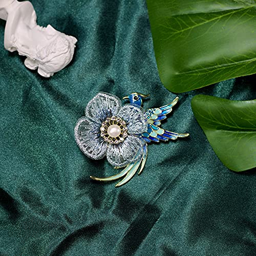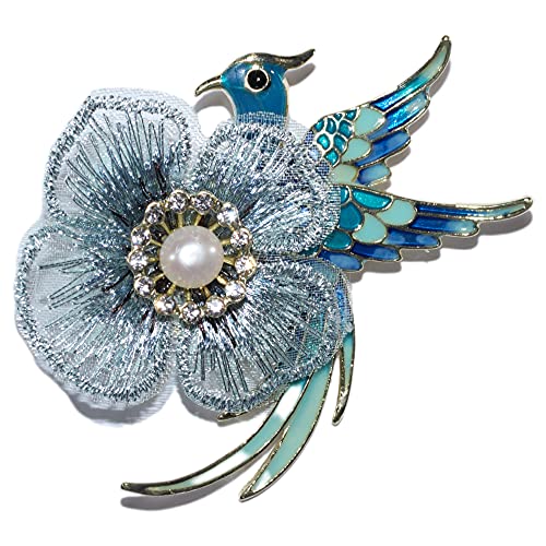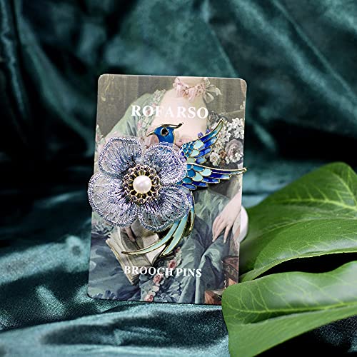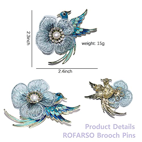 ROFARSO - دبوس بروش بتصميم الوردة والعصفورة للنساء مع كريستال لؤلؤي وحجر الرايت لحفلة الزفاف وهدية التخرج، استخدام السلسلة المزدوج، اكسسوارات دبوس ياقة قلابة للشال وسكارف وابزيم وسويتر وكارديجان, لؤلؤ