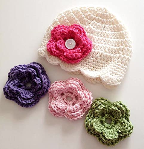 Generic - طاقية الوردة كروشيه، ابيض
