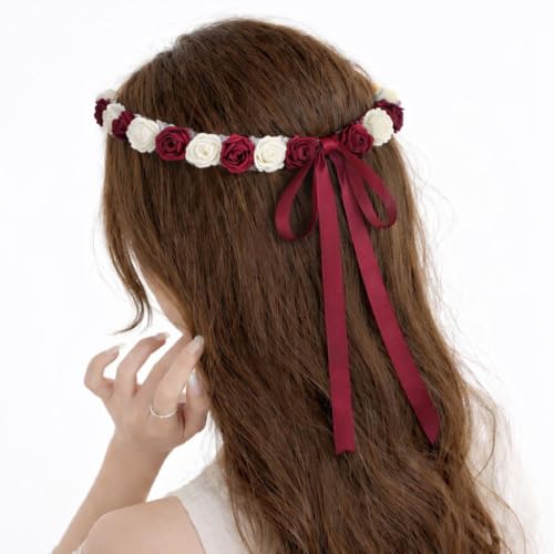 Generic - تاج ورد على شكل اكليل ورد للفتيات لتسريحة شعر أنيقة لحضور المهرجانات وأعياد الميلاد والحفلات المدرسية والحفالات التنكريه (نبيتي)
