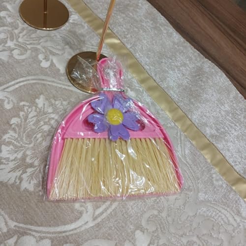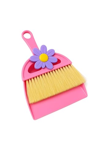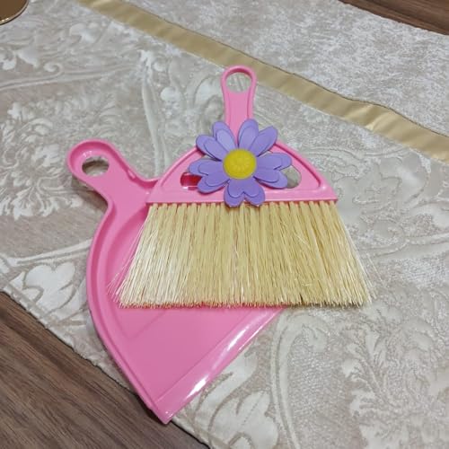 Generic - طقم جاروف ومقشة صغيرة بتصميم زهرة – لون وردي أنيق، عملي للتنظيف اليومي في المنزل والمطبخ والمكتب