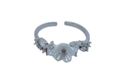 Generic - خاتم مفتوح من الستانلس ستيل بتصميم زهور - فضي