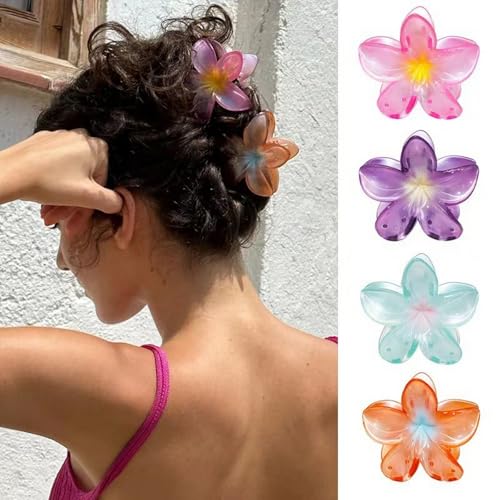 SWEKKE - مشابك شعر على شكل زهرة من 4 قطع، مشابك شعر هاواي ممتعة للشعر الكثيف، تثبيت قوي غير قابل للانزلاق، مشابك كبيرة لطيفة للشاطئ، اكسسوارات شعر ملونة من الاكريليك للنساء والفتيات والعطلات