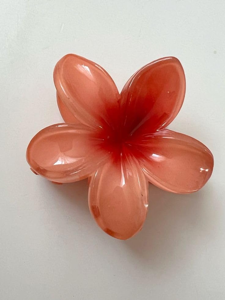 Generic - مشبك شعر على شكل زهرة، لون برتقالي جميله، تصميم بلاستيكي لامع
