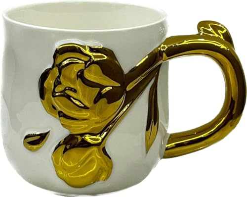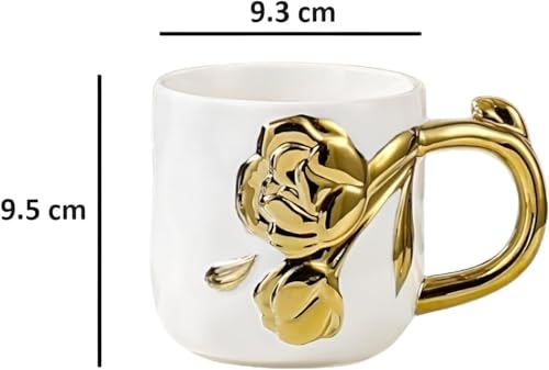 AREXOL - مج بورسلين فلاور بيد جزع شجرة ذهبي أنيق بدون غطاء لتقديم القهوة والشاي والمشروبات الساخنة والباردة تصميم عصري فاخر للاستخدام اليومي في المنزل والمكتب