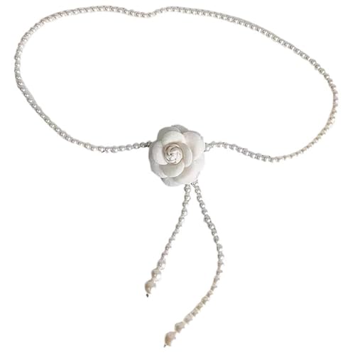 MarveBard - سلسلة خصر من اللؤلؤ بتصميم زهرة الكاميليا العتيقة، قلادة فستان لؤلؤي لطيفة قابلة للتعديل، حزام على شكل زهرة لحفلات الزفاف، حزام لفستان الزفاف للنساء