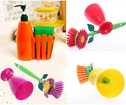 Generic - فرشاة تنظيف على شكل زهرة بمقبض قابل للازالة للمطبخ متعددة الالوان 3 قطع
