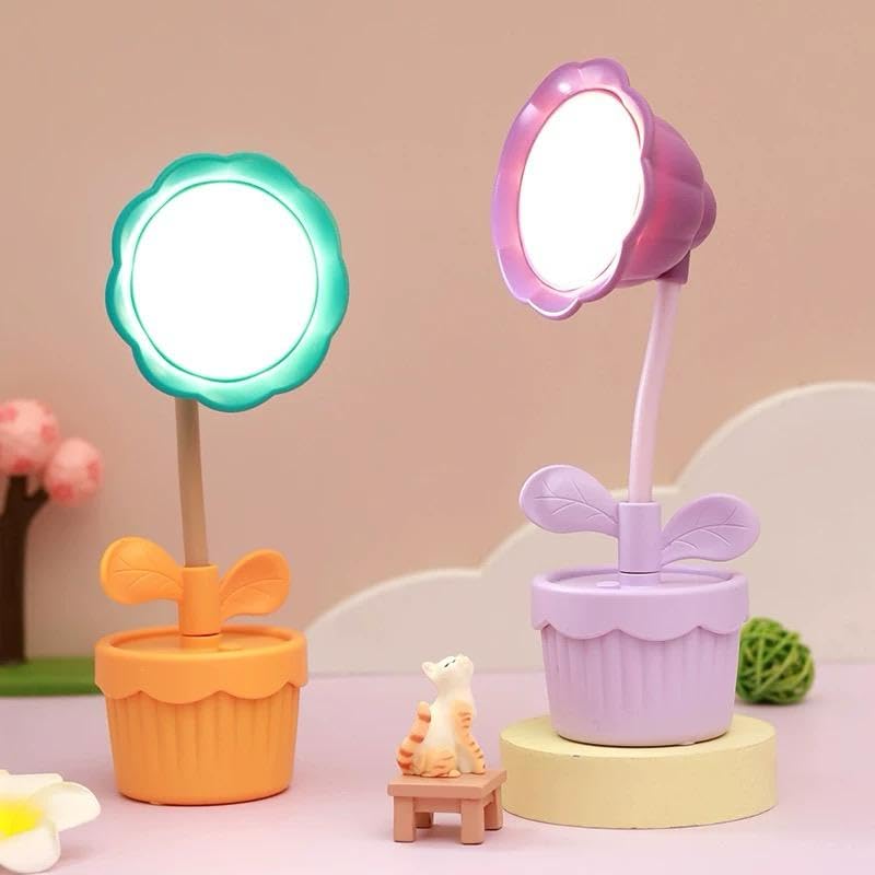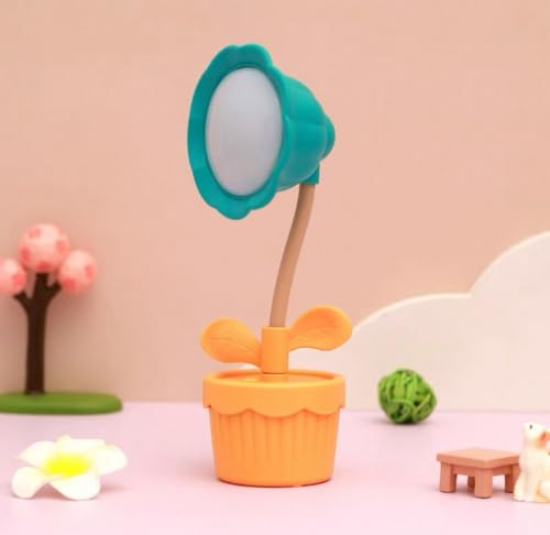 - التصميم: أباجورة مكتب ساحرة على شكل زهرة بتصميم نبات في الأصيص، متوفرة بألوان الباستيل مثل البرتقالي والأرجواني.