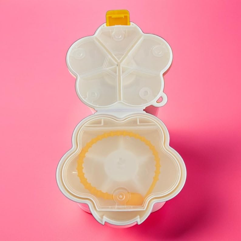 • تصميم زهرة مبتسمة: منظم أدوية على شكل زهرة جذابة مع وجه مبتسم في المنتصف، متوفر بألوان متعددة تضيف لمسة مرحة وأنيقة لتخزين الأدوية والفيتامينات اليومية