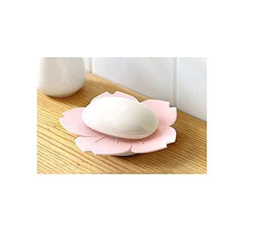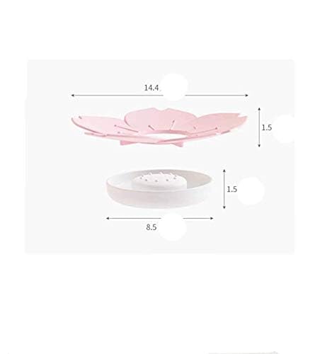 Spaceshoop - حامل صابون ساكورا على شكل زهرة، طبق حفظ الصابون مع فتحة تصريف مزدوجة الطبقات، حامل بار صغير للحمام والدش والمطبخ - بينك