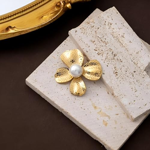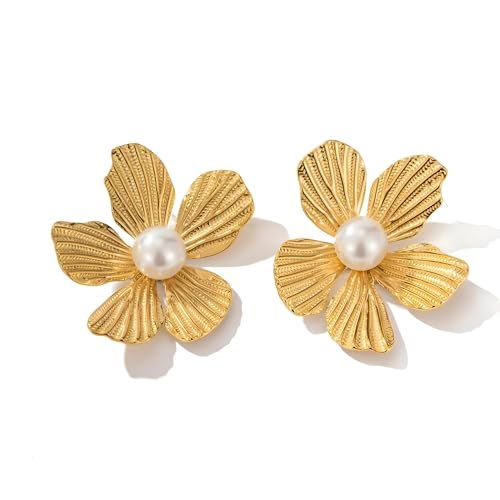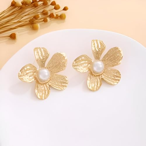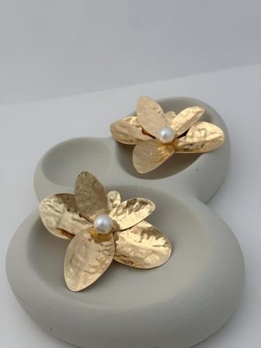 Generic - اقراط على شكل زهرة - تصميم زهرة ذهبية كبيرة مع بتلات معدنية داكنة، مثالية للنساء اللواتي يبحثن عن مجوهرات فريدة وجذابة للمناسبات الخاصة