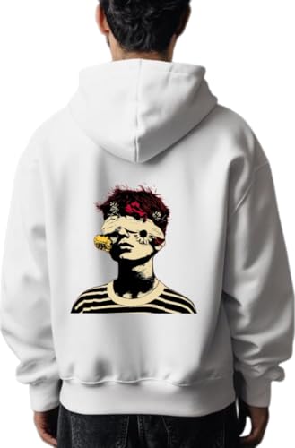 Generic - سويت شيرت بغطاء للرأس بتصميم زهور وعيون بلون ابيض
