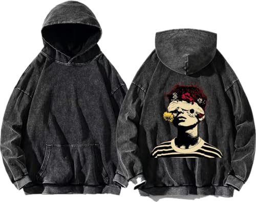 Generic - هودي مزين بالزهور والعيون بظهر مغسول
