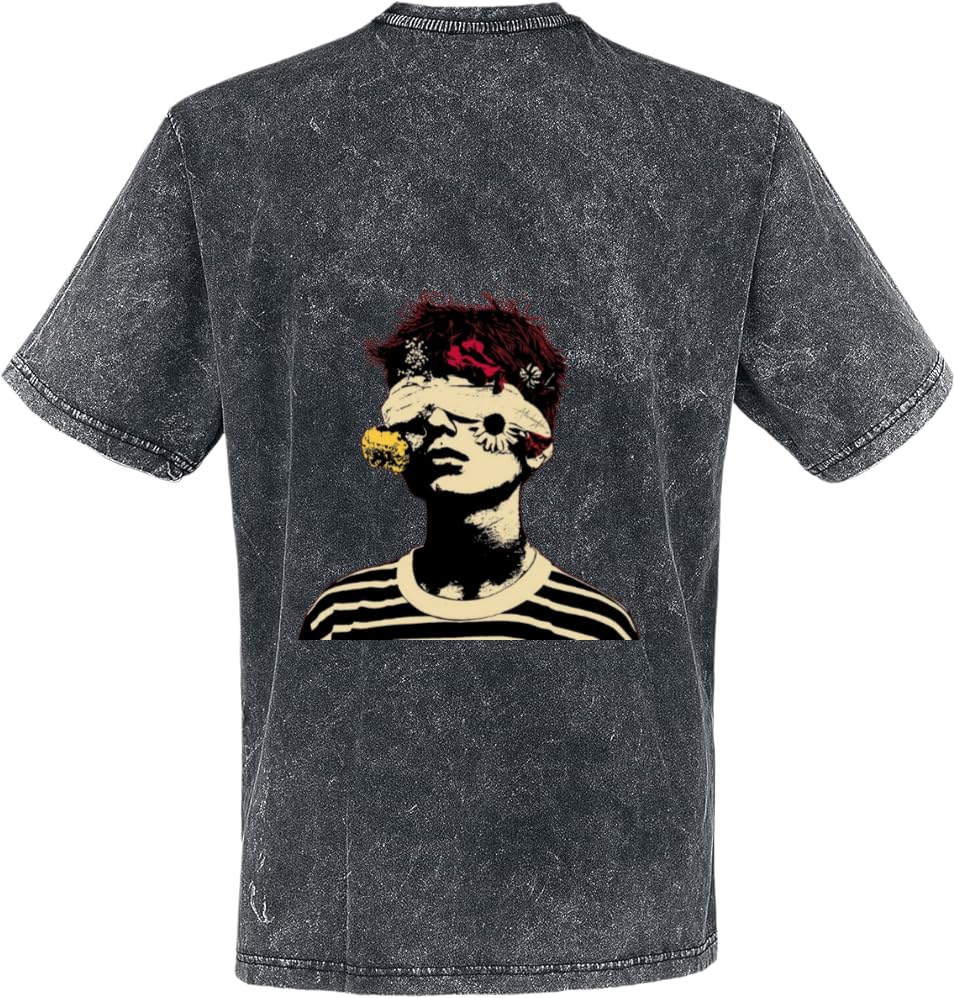 Generic - تي شيرت بطبعة زهور وعيون مغسولة من الخلف