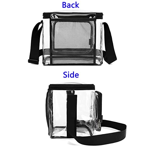 FlowFly - لانش باج شفافة معزولة وقابلة لإعادة الاستخدام معتمدة من الاستاد بوكس كبير للبالغين والنساء فلوفلاي مع حزام كتف قابل للتعديل جيب أمامي بسوستة وجيبين جانبيين شبكيين كبيرين شفاف بلاستيك