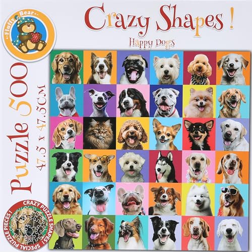 - يتميز هذا بازل الصور المقطوعة المرحة والمسلية بصور كلاب سعيدة بتصميم أشكال مضحكة