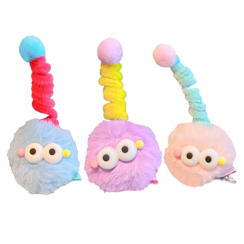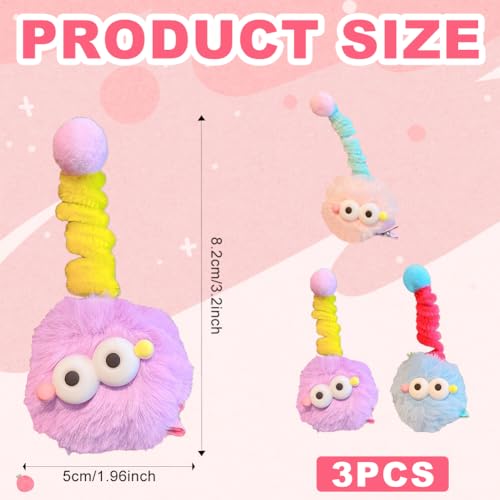 Ksheria - مشابك شعر بوم بوم فلافي للبنات - مشابك شعر كريزي هير داي مضادة للانزلاق (ملونة، كاواي) مشابك شعر ملتوية، اكسسوارات شعر طبيعية مضحكة للنساء والاطفال الصغار (3 قطع)