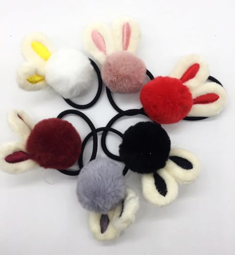 Generic - ربطات شعر على شكل أرنب فرو، مجموعة توك شعر من 6 قطع ملونة للبنات والنساء