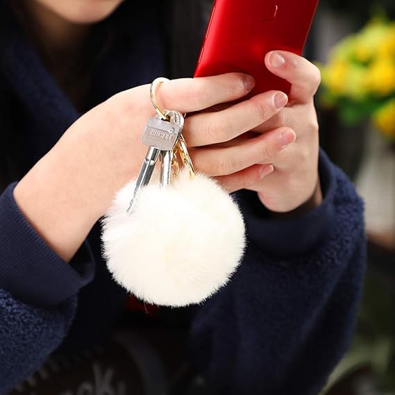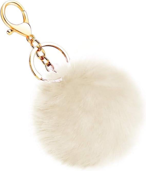 Generic - سلسلة مفاتيح منفوشة ناعمة من فرو الارنب الصناعي ميدالية مفاتيح لطيفة من القطيفة الناعمة للنساء، اكسسوارات قلادة للسيارة وتعليقة شنطة بوم بوم