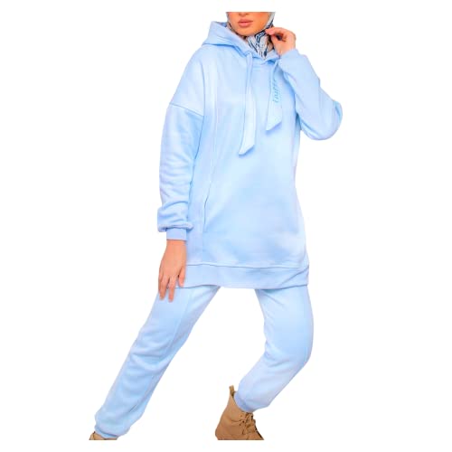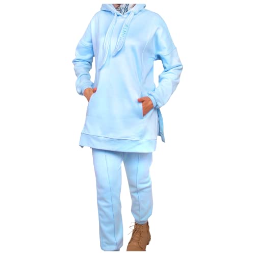 Fluffy - طقم بيجامة مكون من قطعتين (سويت شيرت بكم طويل وغطاء للرأس وبنطلون) للنساء من فلافي، WIN23-101