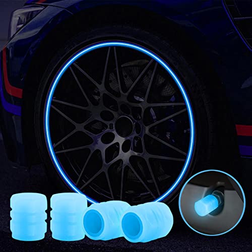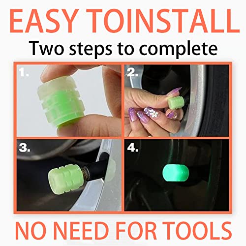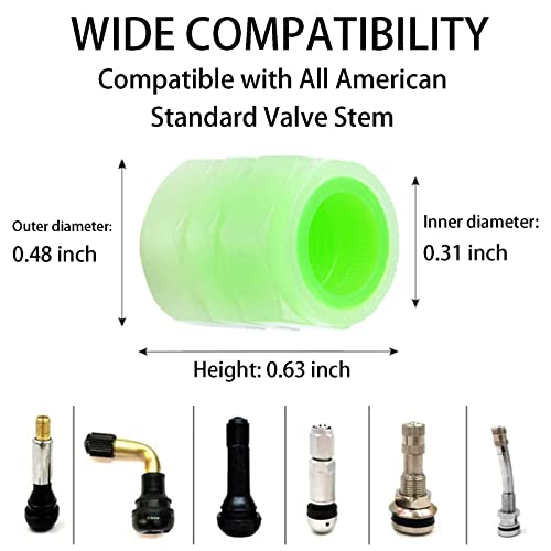 JKPOQA - أغطية صمام الإطارات الفلورسنت، غطاء صمام هواء إطارات السيارة الذي يتوهج في الظلام، أغطية صمامات مضيئة مقاومة للتسرب ومقاومة للتاكل للسيارات والشاحنات وسيارات الدفع الرباعي والدراجات النارية، 4 قطع