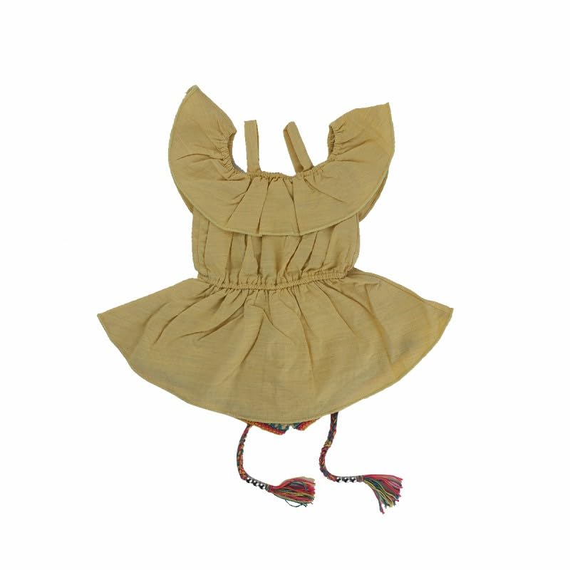 Generic - فستان رومبر بأكمام فراشة للبنات البيبي، لعمر سنتين فما فوق، لون أصفر
