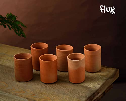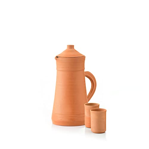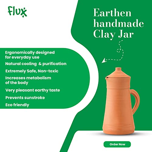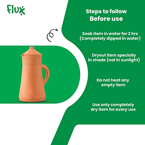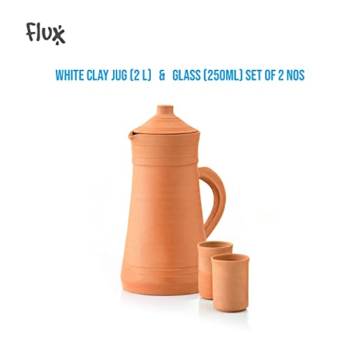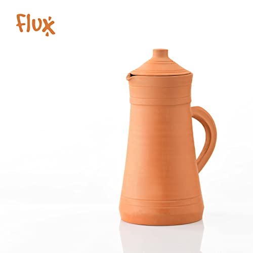 Flux - شفشق صلصال مع عبوة من 2 كوب لمياه الشرب 250 مل، إبريق تيراكوتا ميتي كا، إبريق بغطاء من الطين الترابي الطبيعي لتخزين وتقديم المياه مع كوبين من فلاكس (2 لتر)