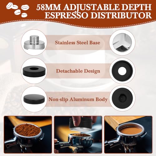 - 58 ملم، موزع قابل للتعديل: يتميز موزع الاسبريسو هذا بملمس رائع مع تصميم قابل للفصل وقاعدة من الفولاذ المقاوم للصدأ وهيكل من الألومنيوم غير قابل للانزلاق. يمكنك ضبط العمق والارتفاع باستخدام الآلية الحلزونية لتناسب فلاتر القهوة أو السلال المختلفة. مع ثلاثة منحدرات مائلة توزع القهوة المطحونة بفعالية وبشكل متساوٍ لتحقيق ضغط ثابت وتحسين التحكم والاتساق.