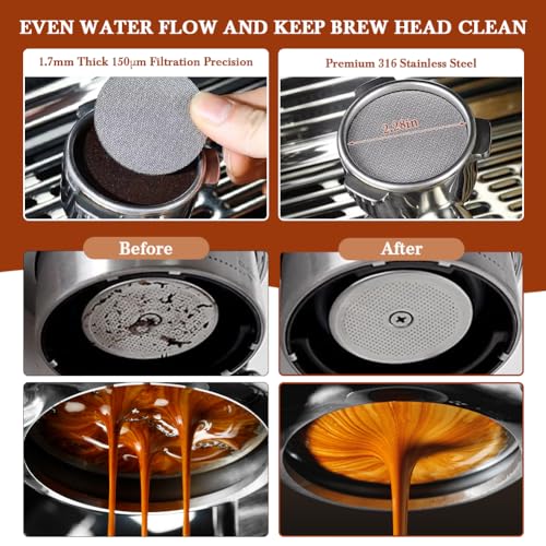 - قرص شبكي 58 ملم واسبراتير دبليو دي تي: القرص الشبكي مصنوع من الفولاذ المقاوم للصدأ 316 الممتاز، بسمك 1.7 ملم مع دقة ترشيح 150μm لمزيد من إعادة الاستخدام والترشيح الممتاز. سيعمل قرص تصفية القهوة الشبكي هذا على توزيع الماء بالتساوي لزيادة المواد القابلة للذوبان والمستخرجة في الاسبريسو، مما يساعدك على تحقيق استخلاص أفضل. كما أنه يحافظ على نظافة رأس المشروب. يمكن لموزع دبليو دي تي توزيع الطحن بالتساوي، مما يزيد من الاستخلاص.