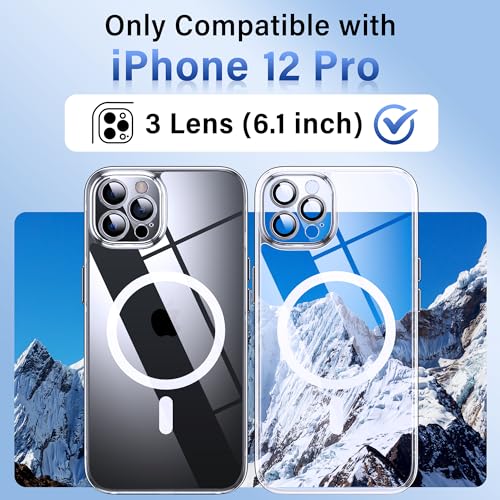 Flyzoo - جراب حماية مغناطيسي شفاف مع واقي عدسة كاميرا غير قابل للاصفرار مع حماية ضد الصدمات والخدوش وتصميم صلب مع حافة سيليكون لموبايل آيفون 12 برو 6.1 بوصة من فلاي زو، شفاف